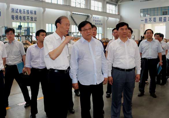 6月7日,中央第三巡回督導組組長、全國人大常委、環境與資源保護委員會主任委員、甘肅省委原書記、人大常委會原主任陸浩一行親臨江蘇上上電纜集團調研黨的群眾路線教育實踐活動落實情況。江蘇省、常州市、溧陽市相關領導陪同。集團董事長、總經理丁山華、常務副總經理丁志鴻等公司高層領導進行了熱情接待,并全程陪同督導組實地調研。