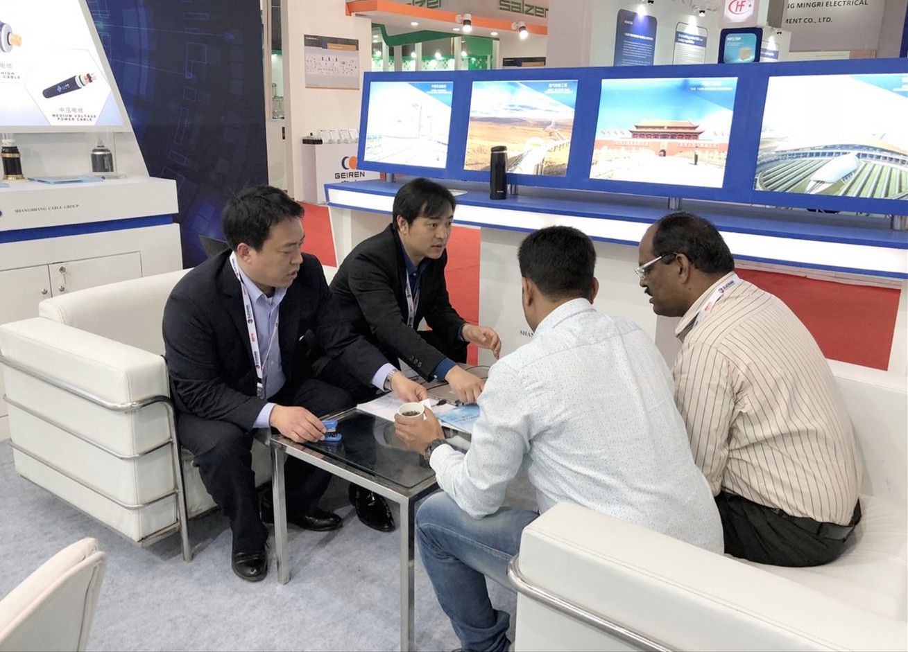 此次展會,經過精細策劃、籌備,上上特種電纜、工業制造電纜、建筑樓宇電纜、電力電纜四類產品一一亮相,配合港珠澳大橋、磁懸浮列車、三峽水利工程、西氣東輸等重點工程展示,吸引了大量國內外客戶以及業內展商前來參觀洽談。上上以專注于電纜制造的工匠精神、優質的產品、強大的研發實力、完善的服務體系在印度眾多客戶中留下了深刻的印象,樹立了良好的品牌形象,充分展示了今日中國制造的水平。