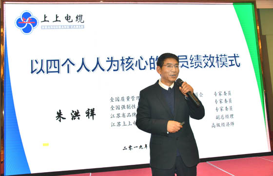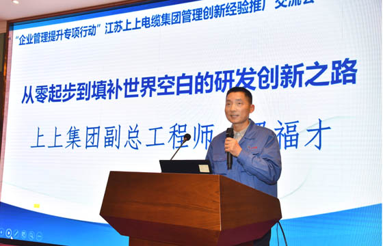 交流會上,上上電纜董事長丁山華圍繞“專注、專業、人誠、品優、創新”等五個方面分享了上上跨越半個世紀的發展實踐與探索經驗。副總經理朱洪祥、副總工程師、核電辦主任梁福才、低壓分廠廠長葛秋平分別從質量管理績效模式、研發管理創新、高效率運營管理之道三個維度作了專題報告,對上上管理創新經驗作了詳盡分享。兩位特邀專家圍繞工業互聯與標識體系、合規管理體系的建設與提升主題作了精彩演講。